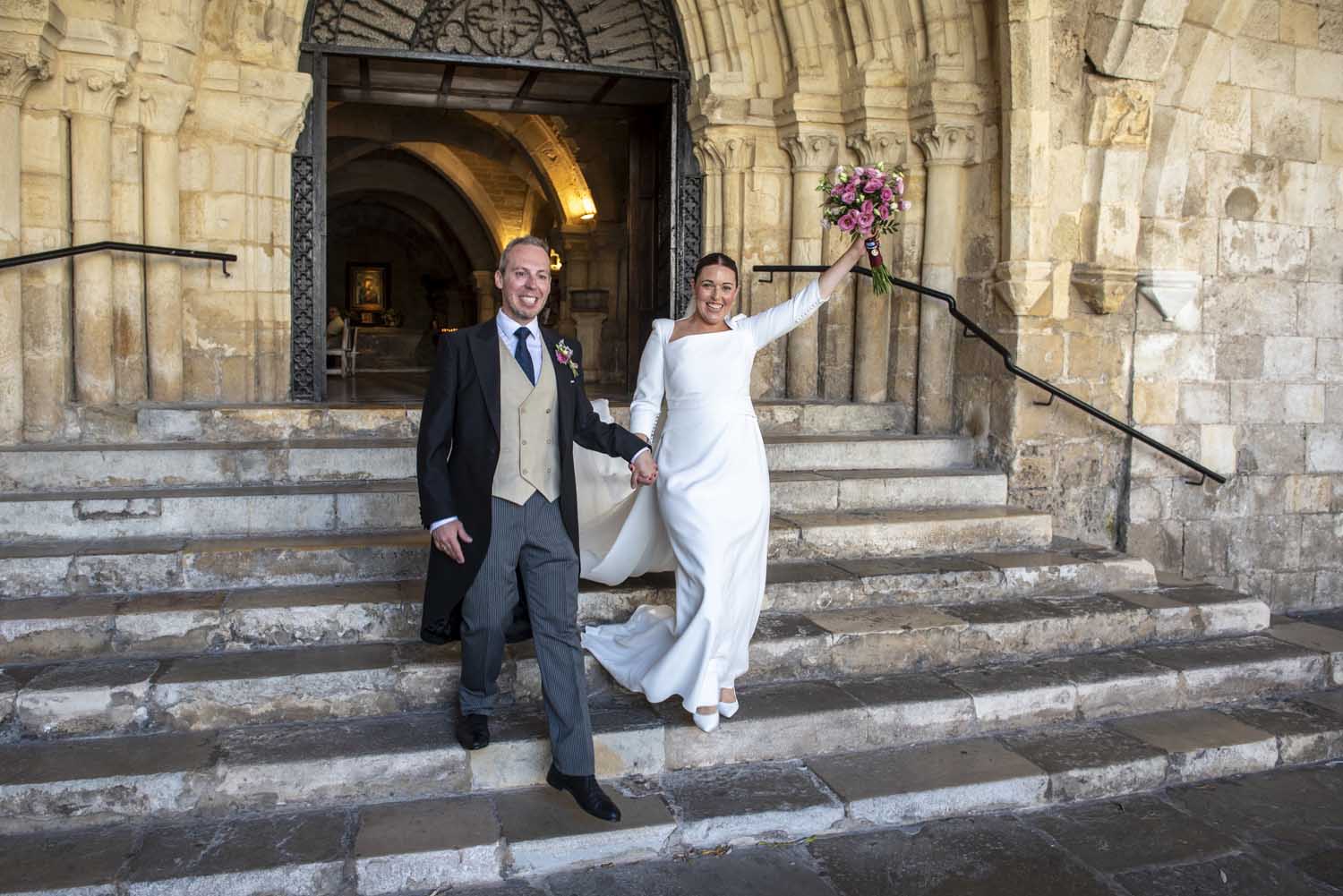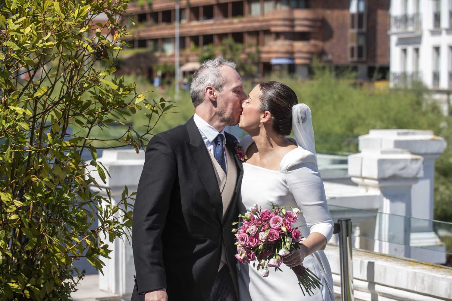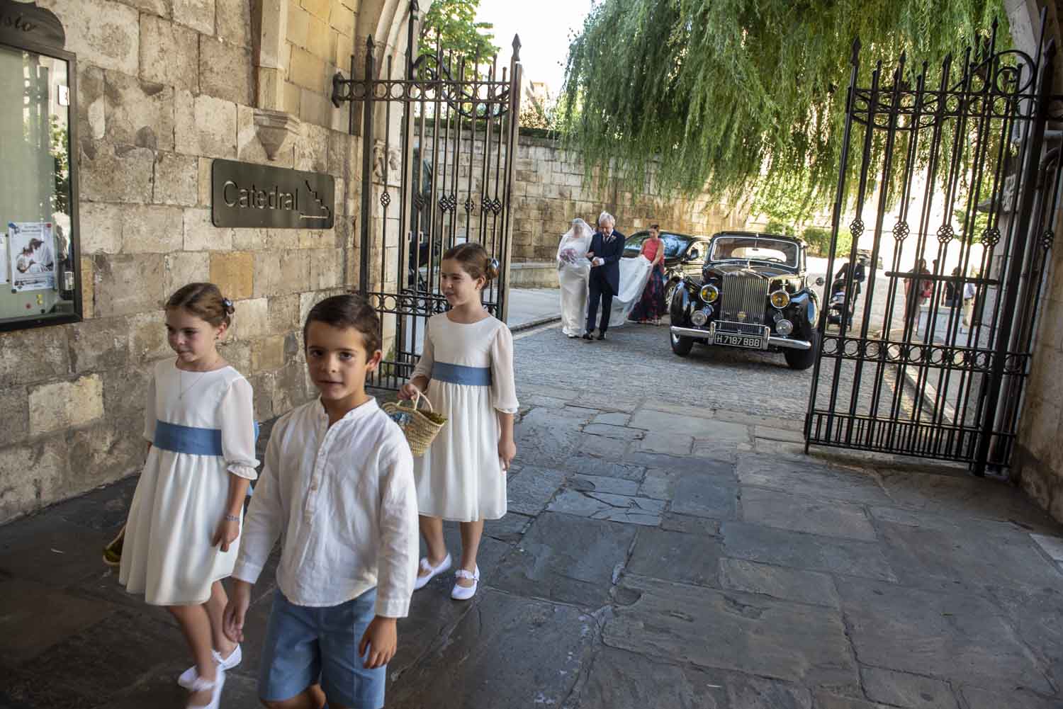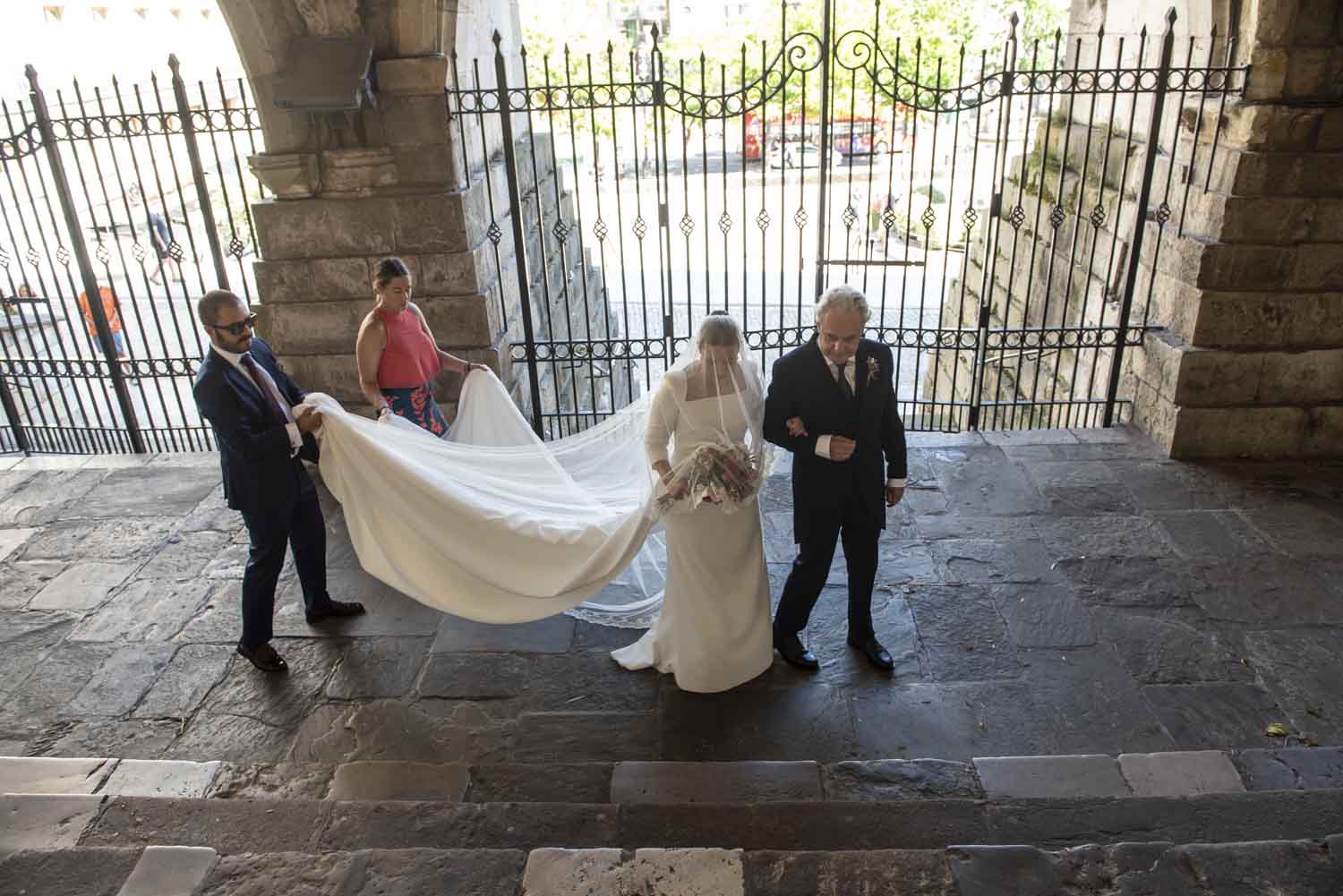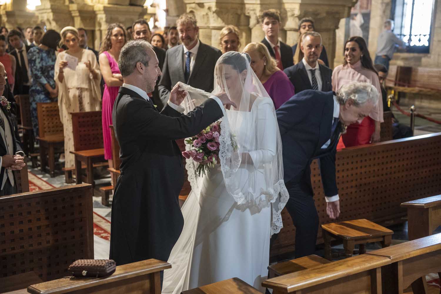 Acabada la ceremonia y casi sin tiempo para recibir las felicitaciones de sus invitados, subimos al claustro de la Catedral para realizar la sesión de fotos con los recién casados en un ambiente más relajado. Este es el momento que más me gusta, el único en el que puedo pausar el ritmo frenético de la boda y disfrutar fotografiando a los novios con la calma que requiere una buena sesión de retrato. Y el claustro soleado y en silencio es el lugar perfecto para hacer bien mi trabajo.