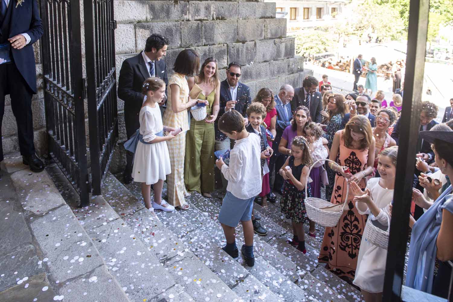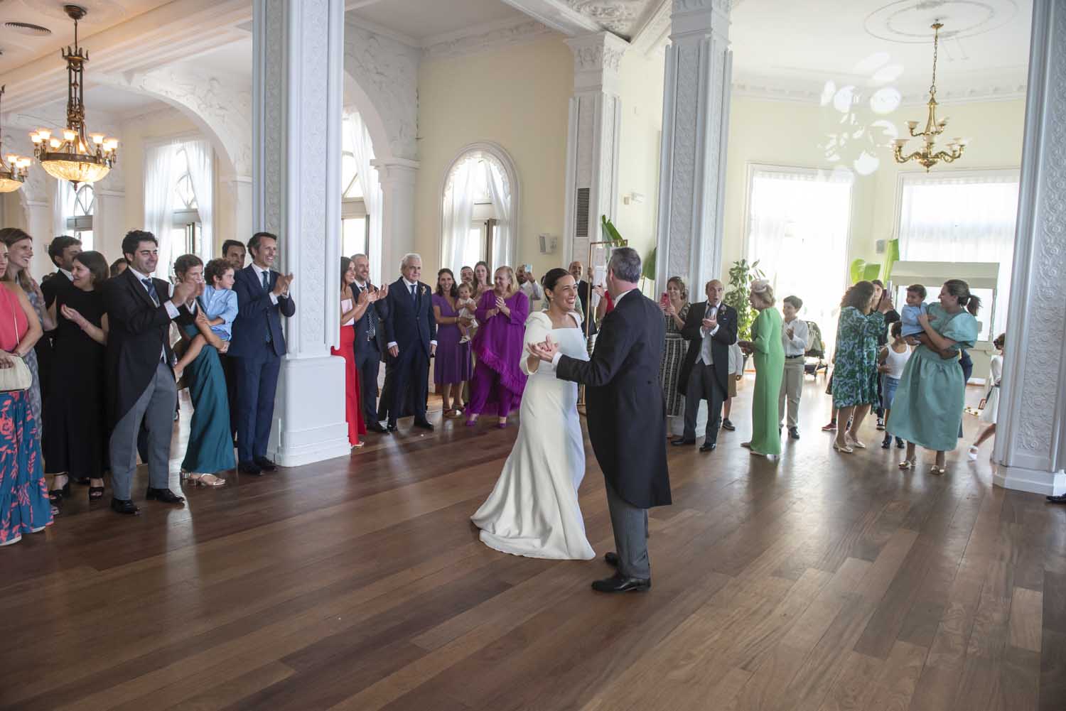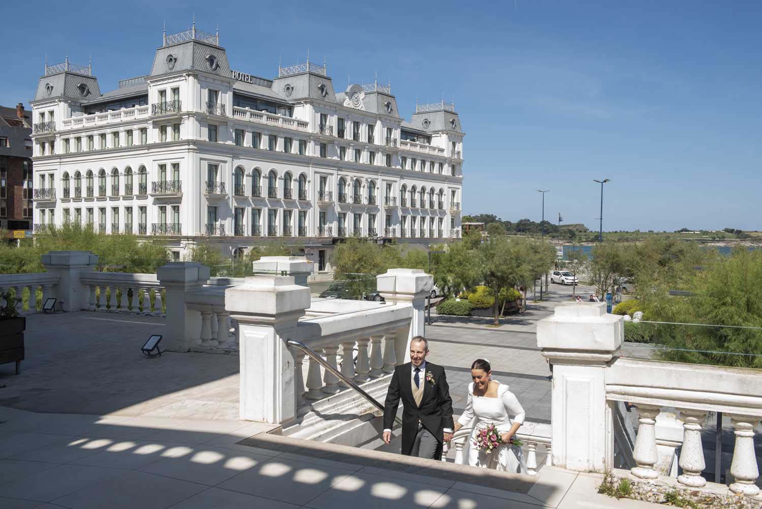 Pero no podíamos demorarnos, los invitados nos esperaban, por lo que dejamos a los novios subiendo al coche para dirigirnos al Gran Casino del Sardinero y captar allí la llegada de Virginia y Miguel a una Plaza de Italia vacía de turistas gracias al tórrido calor del mediodía. No hay mal que por bien no venga.